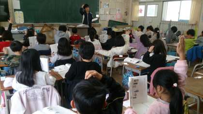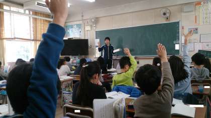 1年生の国語で、「まとめて よぶ ことば」の学習に取り組んでいます。仲間になる言葉の関係について理解する学習です。子どもたちは積極的に発表しています。