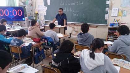 6年生の外国語活動で、将来なりたい職業について学んでいます。英語でそれらの職業を書けるように学習しています。