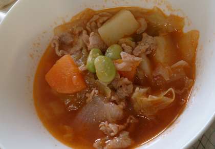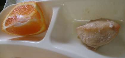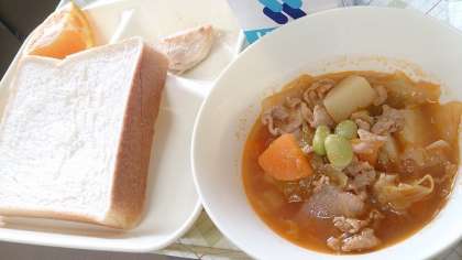 今日の給食は、鶏肉のガーリック風味焼き、豚肉と野菜のケチャップ煮、デコポン、ソフトマーガリン、パン、牛乳です。