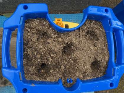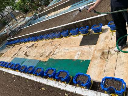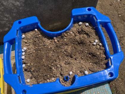5つぶずつまいて、こやしをあげました。今度学校に来たときに、自分のアサガオの鉢をさがしてみてください。