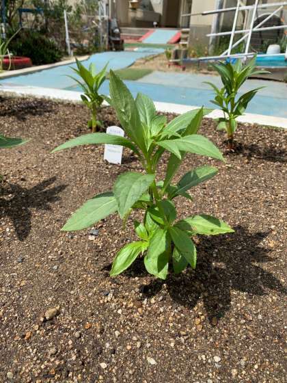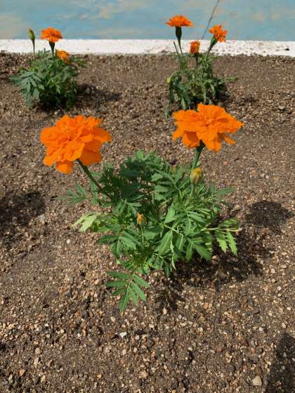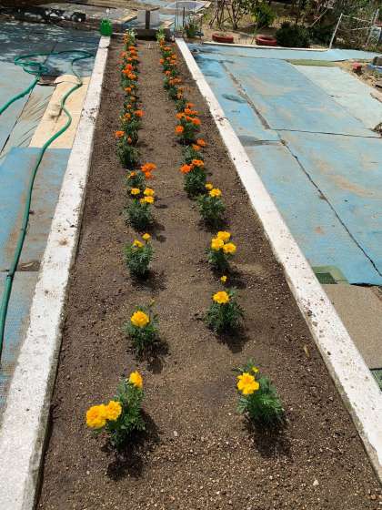 マリーゴールドとホウセンカの苗を植えました。学校に登校したときに、学習園で見てください。