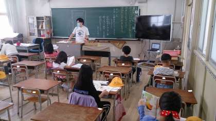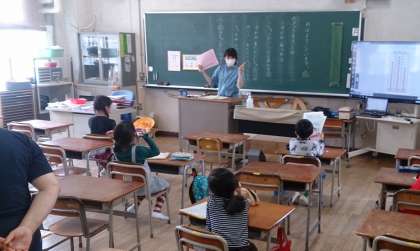 2年生偶数班の学級での様子です。子どもたちは、しっかりと先生のお話を聞いています。