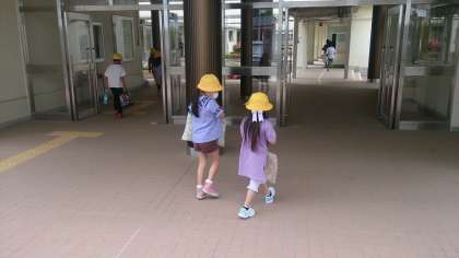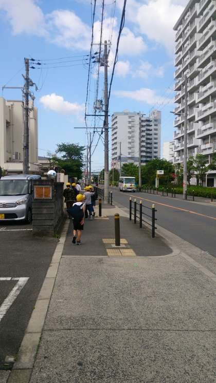 本日、5月20日(水)1・3・5年生の登校日です。写真は、正門での子どもたちの登校の様子です。みんな元気に登校しています。