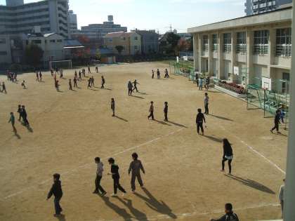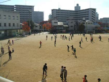そんな中、高学年と中学年?低学年?が一緒になってドッジボールをしていたり、学級遊びをしていたり、先生も交じっていたりと、楽しそうに遊んでいます。