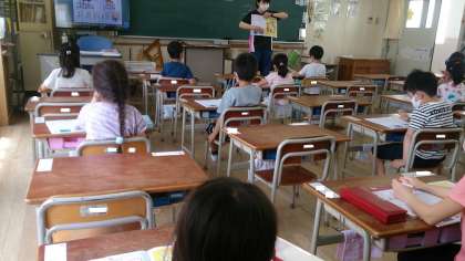 1年生は、国語でひらがなの学習に取り組んでいます。今日は、「つ」と「く」の学習でした。子どもたちは、とても丁寧に書いています。