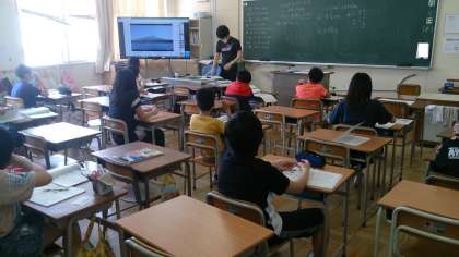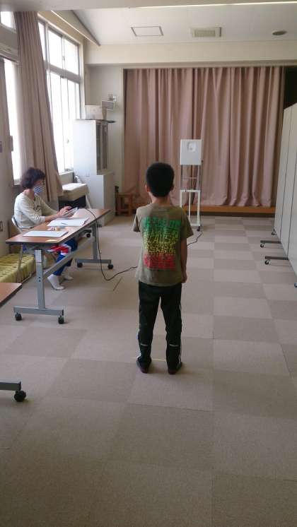 5年生は社会で、国土について学んでいます。今日は、5年生は、視力検査も行っています。