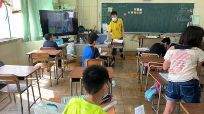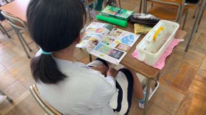 教科書に載っている「心のもよう」という作品の説明を聞いています。出来上がりが楽しみです。
