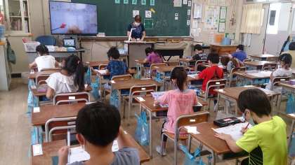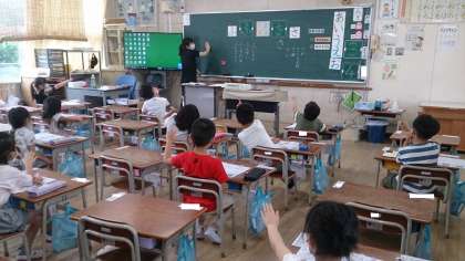 1年生は国語で、ひらがなの学習に取り組んでいます。今日は、「さ」と「ふ」の文字を学んでいます。
