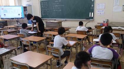 5年生は、国語で新出漢字の学習、算数では単位についての課題に取り組んでいます。