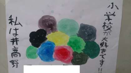 4年生の児童が、絵を持ってきてくれました。「井高野小学校が大好きです!」と書かれた絵です。気持ちがこもった素敵な絵です。微笑ましい気持ちになりました。いよいよ来週から、通常登校が始まります。