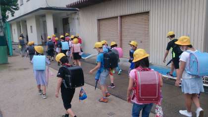 6月12日(金)、今日は分散登校の最終日となります。天候不順ですが、前半(偶数)グループの子どもたちは元気に登校しています。