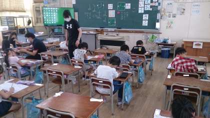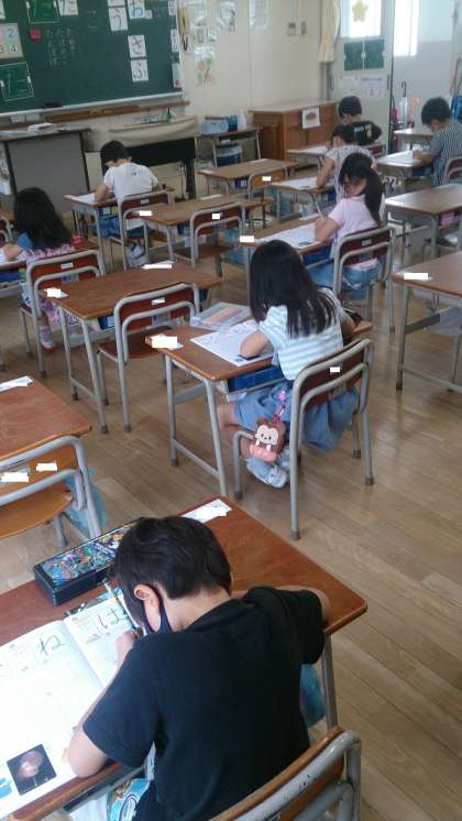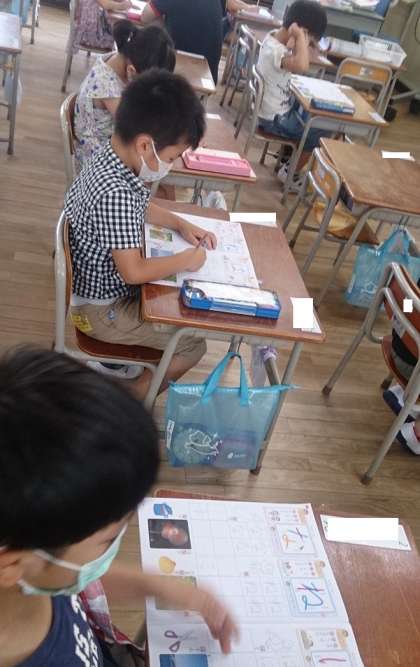 1年生が国語で、ひらがなの学習に取り組んでいます。今日は、「た」と「は」の文字を学んでいます。
