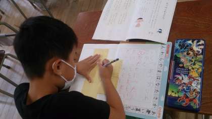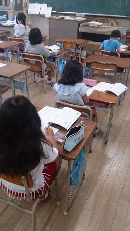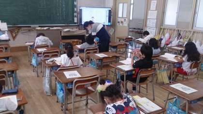 2年生の国語で、教材「いくつあつめられるかな」の学習に取り組んでいます。書くことの学習で、楽しかったことなどを付箋紙に書いています。