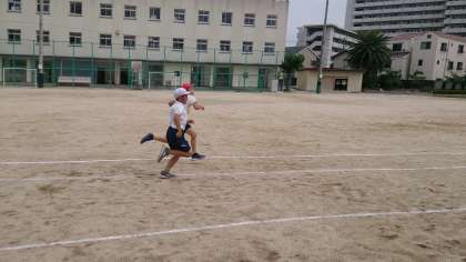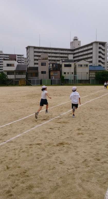 4年生は体育で50m走に取り組んでいます。子どもたちは、久しぶりの体育で、とても楽しそうです。
