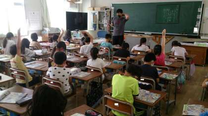 3年生の社会で、「わたしたちのまちみんなのまち」の学習に取り組んでいます。子どもたちは積極的に手を挙げて発表しています。
