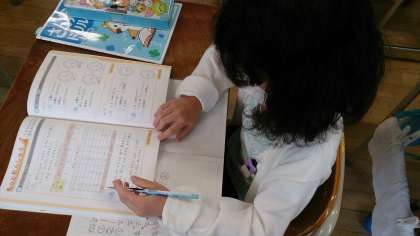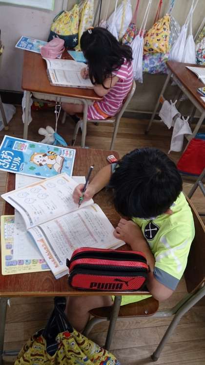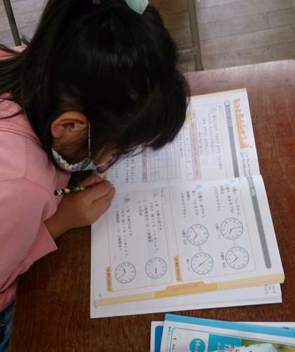 2年生の算数で、「ひょうとグラフ」の学習のまとめに取り組んでいます。真剣に課題を読み取って、課題解決しています。