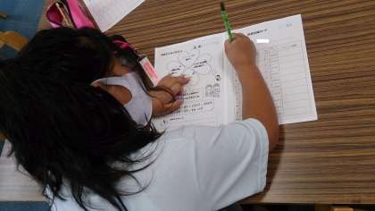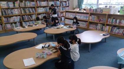 3年生の国語で図書室で読書に取り組んでいます。読んだ本は、読書記録カードに題名や感想を記録しています。