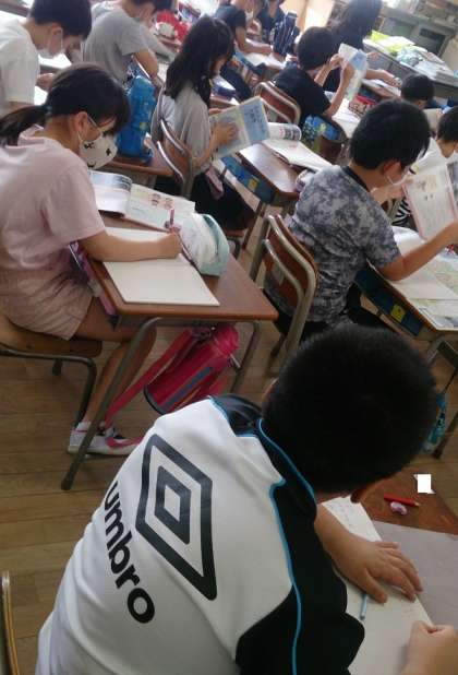 3年生の社会で、大阪市の学習をしています。地図を開きながら、大阪市の地理的・歴史的ないろいろな場所について調べています。