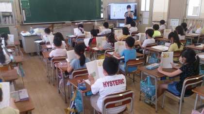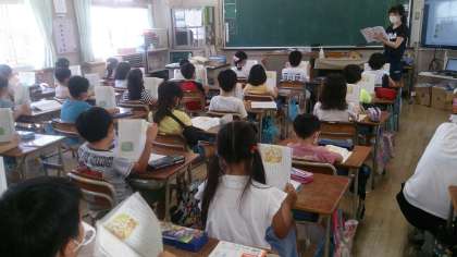 2年生の国語で、物語文「風のゆうびんやさん」の学習のまとめとして、音読に取り組んでいます。