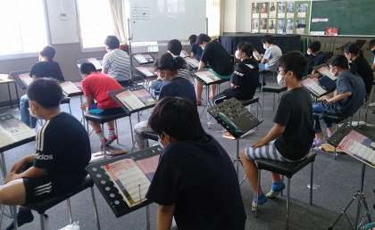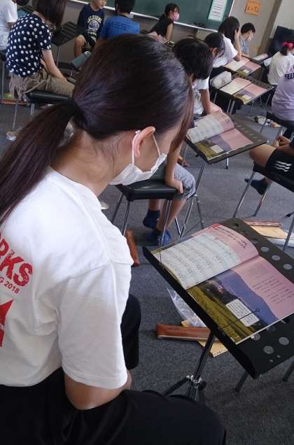 6年生の音楽で、「おぼろ月夜」の曲を聞き、歌詞の内容を理解し、情景を思い浮かべる学習に取り組んでいます。この曲は、文語体の歌詞で田園の夕景を美しく歌い上げたものです。