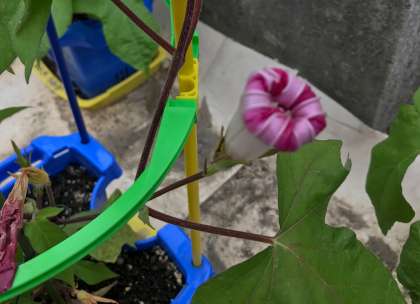 みんなのがんばりで、大きな花、きれいな色の花が咲いています。しぼんだ花も見つけました。