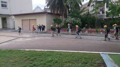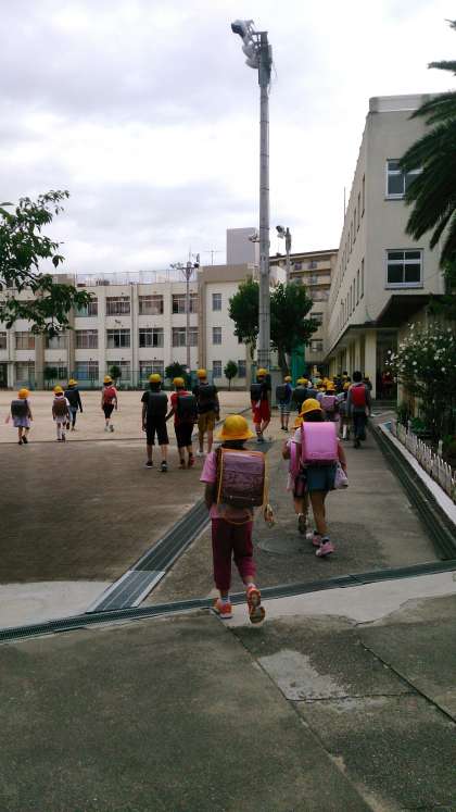 7月2日(木)、少し気温が下がり、爽やかな朝を迎えています。子どもたちは、友だちと元気に登校しています。
