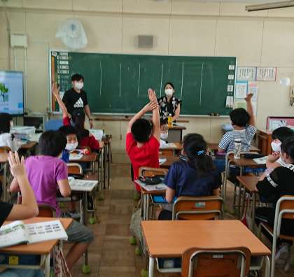 C-NETのライザ先生と一緒に学習しました。ライザ先生が言った単語を聞き取り、その頭文字を当てるというゲームをしています。