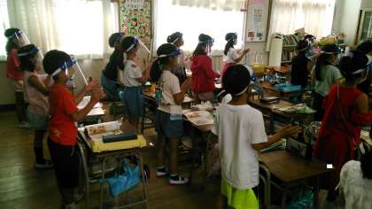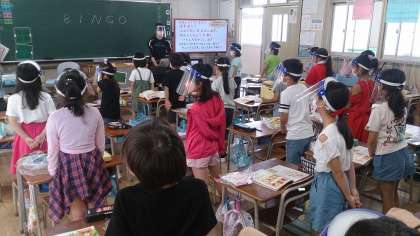 2年生の音楽で、「BINGO」という曲を手拍子をとりながらリズムに合わせて歌っています。