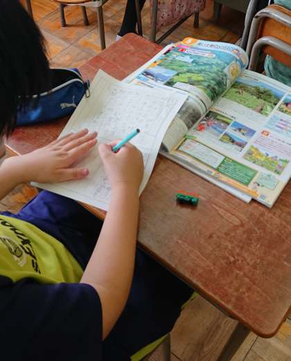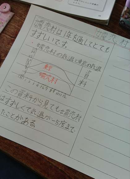 群馬県嬬恋村について学習したことを新聞の形でまとめています。教科書や資料集、ノートを見ながら、みんな集中して取り組んでいました。