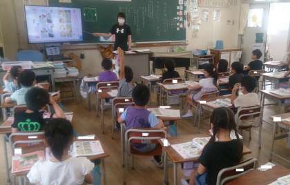1年生の道徳で、教材「ゆうたのへんしん」の学習に取り組みました。規則正しい生活とそうでない生活を比べて、それぞれの気持ちの違いに気づき、規則正しい生活をしようとする判断力を育てる学習です。