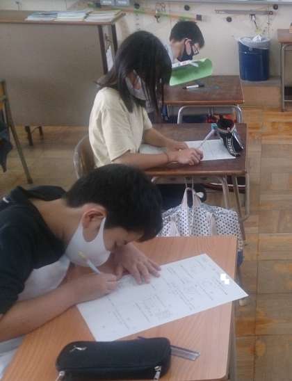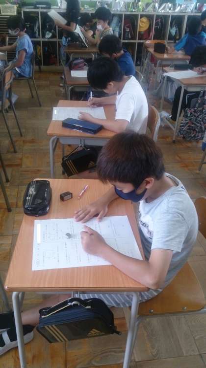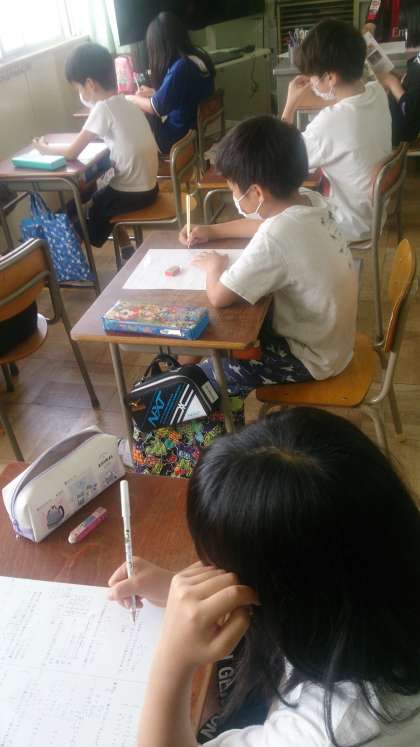 5年生の算数で、学習のまとめとして、テストに取り組んでいます。子どもたちはとても集中しています。
