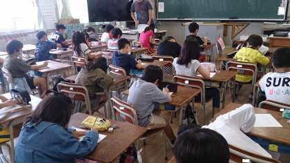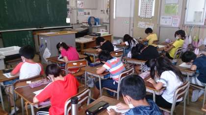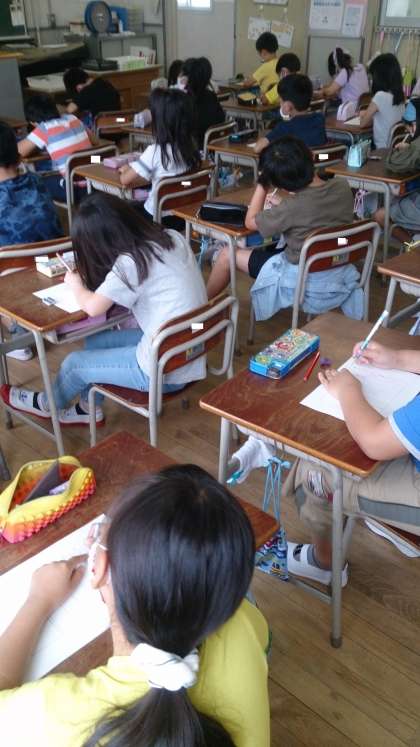 3年生の国語で、漢字の小テストに取り組んでいます。今日は、「身長」「調理」「体育」などの新出漢字です。子どもたちは集中して取り組んでいます。