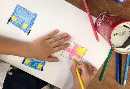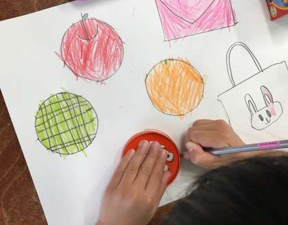 いろいろなはこのかたちをうつして、えをかきました。