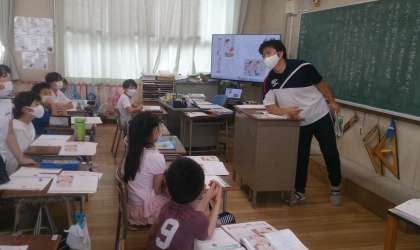 4年生の道徳で、教材「さち子のえがお」の学習に取り組んでいます。正しいと思うことを進んで行うことの大切さについて学んでいます。