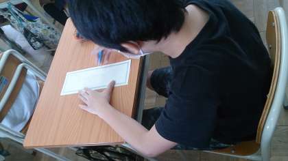 6年生の人権教育で、人権標語づくり取り組んでいます。友だちのことや平和のことなど、子どもたちは標語に願いや気持ちをこめて表現しています。