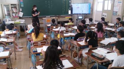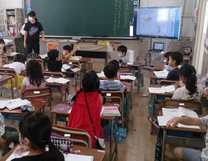 2年生の国語で、教材「名前を見てちょうだい」の学習に取り組んでいます。役割を決めて、登場人物の様子を音読や動作で表現し物語を読み進めています。