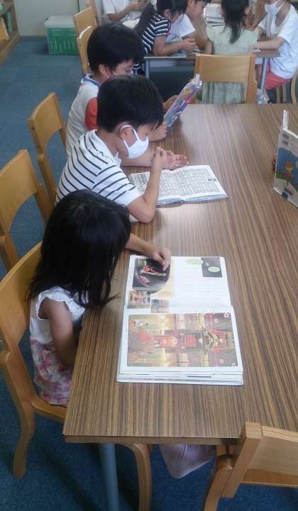 1年生が図書の時間に、読書活動に取り組んでいます。子どもたちは、静かに集中して読書しています。
