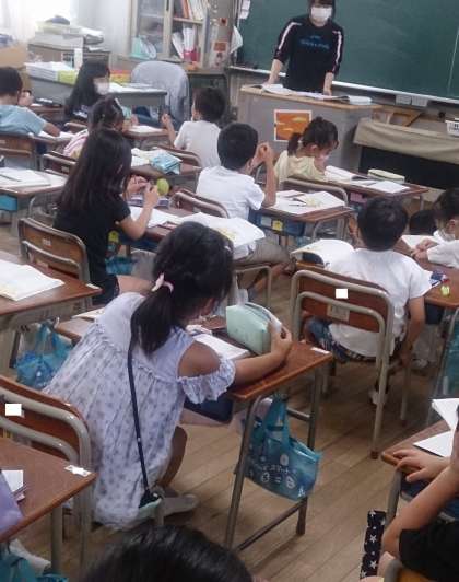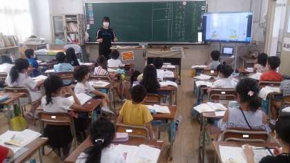 2年生の国語で、教材「名前を見てちょうだい」の学習に取り組んでいます。この時間では、場面の読み取りをしています。