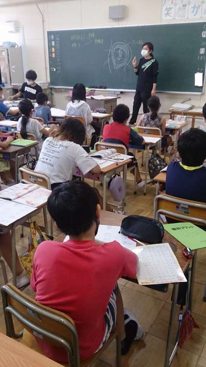 5年生の理科で、人の誕生の学習に取り組んでいます。胎児がどのように育っていくかを調べています。