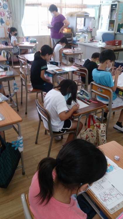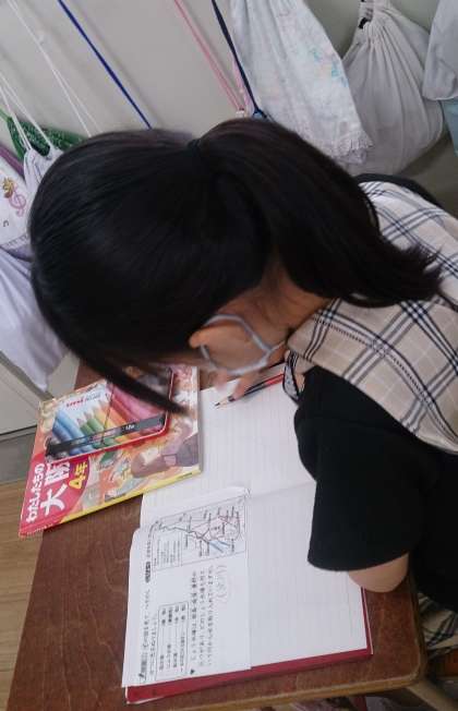 4年生の社会で、大阪市の浄水場の位置など、学習のまとめに取り組んでいます。