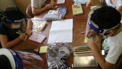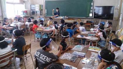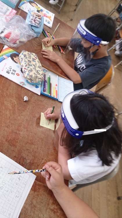 2年生の生活科の学習で、校区の絵地図づくりに取り組んでいます。班で相談しながら、校区の施設や設備を描いています。