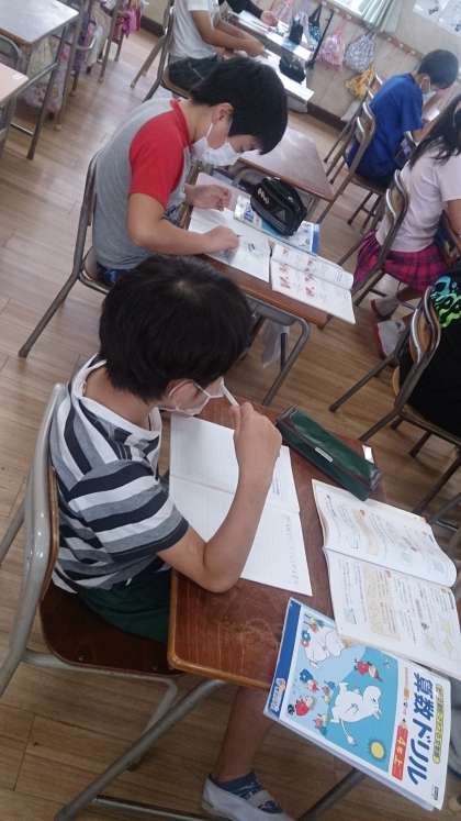 4年生の算数で、「対角線」を切ってできる形を考える学習に取り組んでいます。いろいろな四角形の対角線の性質を学んでいます。