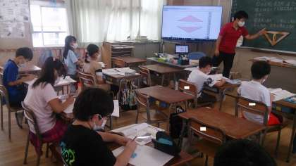 対角線の定義を知り、いろいろな四角形に対角線を引いて、その特徴を分類整理する活動に取り組んでいます。また、垂直と平行の作図も繰り返し学んでいます。