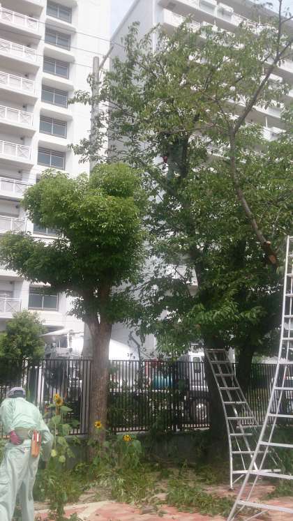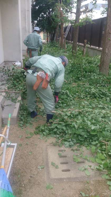 暑い中ですが、管理作業員さんと大阪市営繕班の方たちで、合同の園芸作業が行われています。