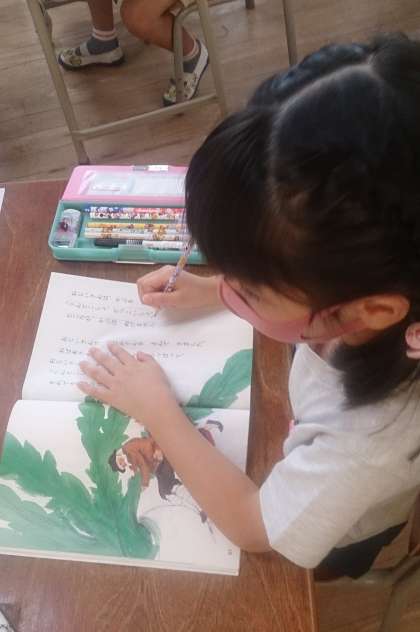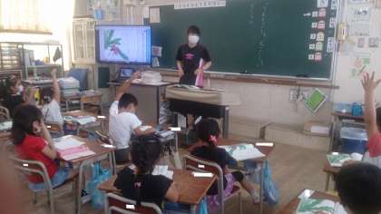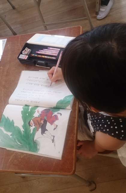 物語文「おおきなかぶ」を学習しています。登場人物の動きのわかる文に線をひきました。