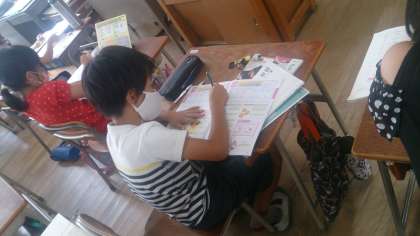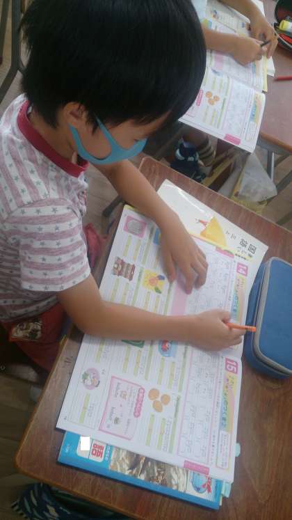 ローマ字の学習をしました。先生と確認しながら練習しました。