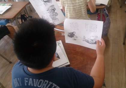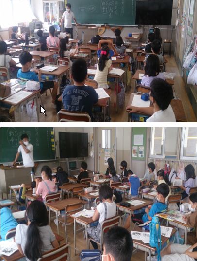 担任の先生より、1945年8月6日8時15分、広島に原子爆弾が投下され、8月6日が、平和を祈念する大切な日であることを学習しました。また、新型コロナに感染された方に対する差別や偏見をもたない気持ちについても話し合いました。3年生は、教材「ピカドン」を読み、平和について考えました。