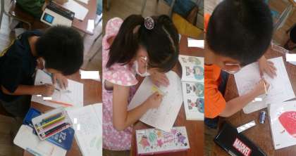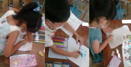 絵日記の学習をしました。自分の楽しかった思い出を絵日記して書きました。