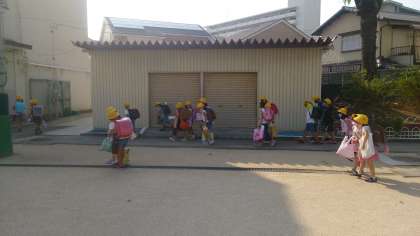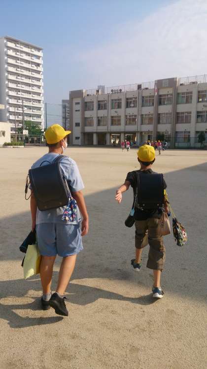 いよいよ今日から2学期がはじまりました。子どもたちは、夏休みの課題などの荷物をもって元気に登校しています。