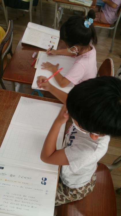 単元「ことばで絵をつたえよう」の学習に取り組んでいます。聞く人に分かりやすい順序で説明する力をつけるための学習です。